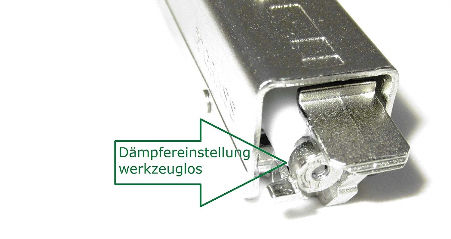 - Amortissement intégré dans le bras de la charnière, réglable sans outil : 3 niveaux
