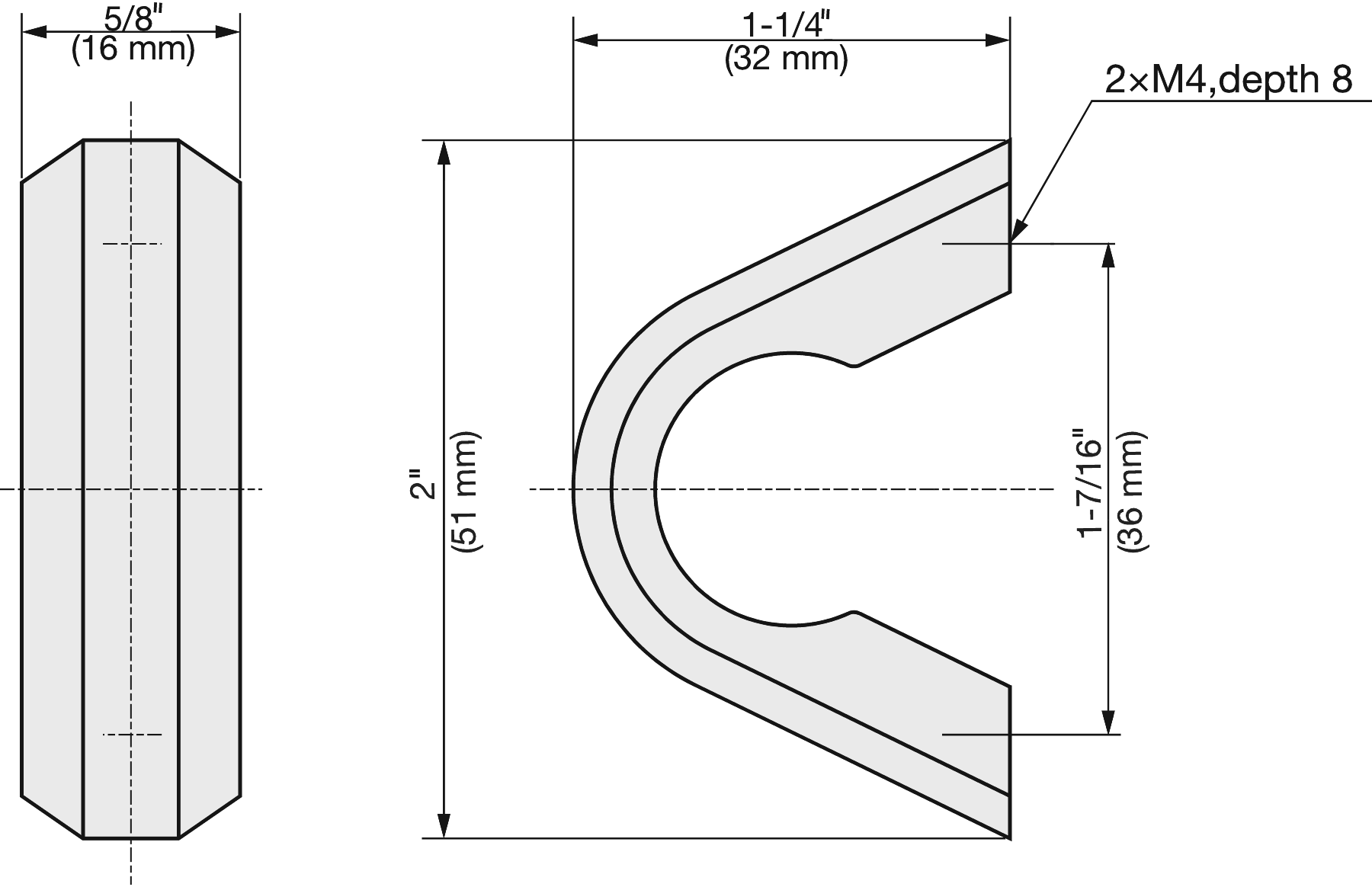 • Épaisseur du matériau : 16 mm (0,63″) x 10 mm (0,4″)