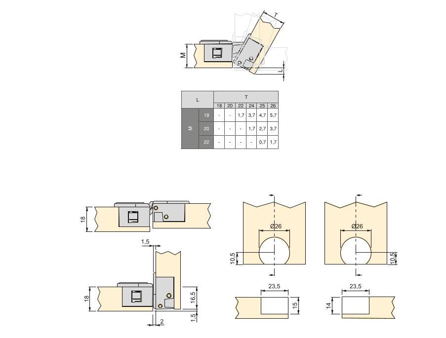 - La distance entre le centre des trous de forage et le bord doit être de 26 mm (1-1/32 »)