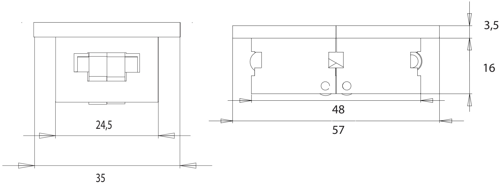 Charnière de table encastrée, 180°, 35 mm, de SISO, beige. Dessin technique