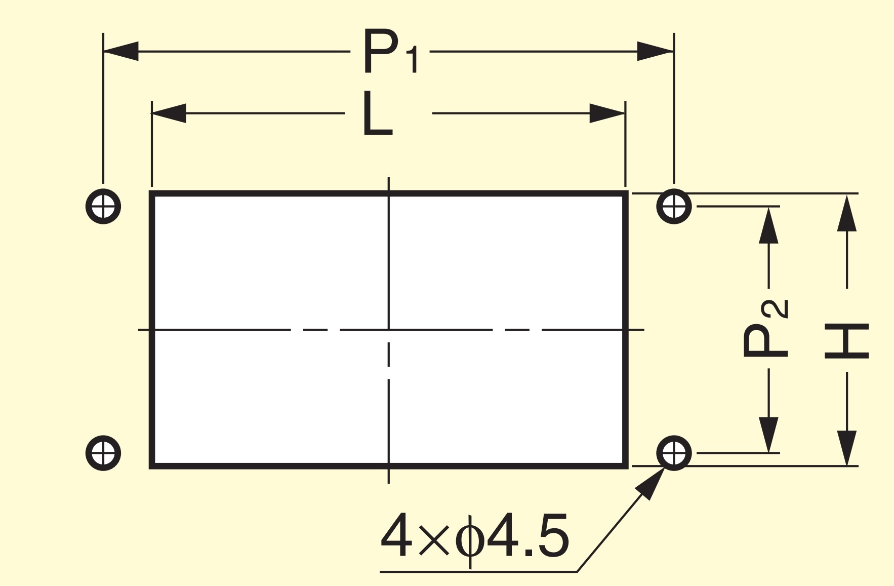 - De plus, quatre trous d’une distance P1=88 mm (3-15/32 ») et P2=38 mm (1-1/2 ») doivent être pré-percés (pour plus de détails, voir le dessin de montage)