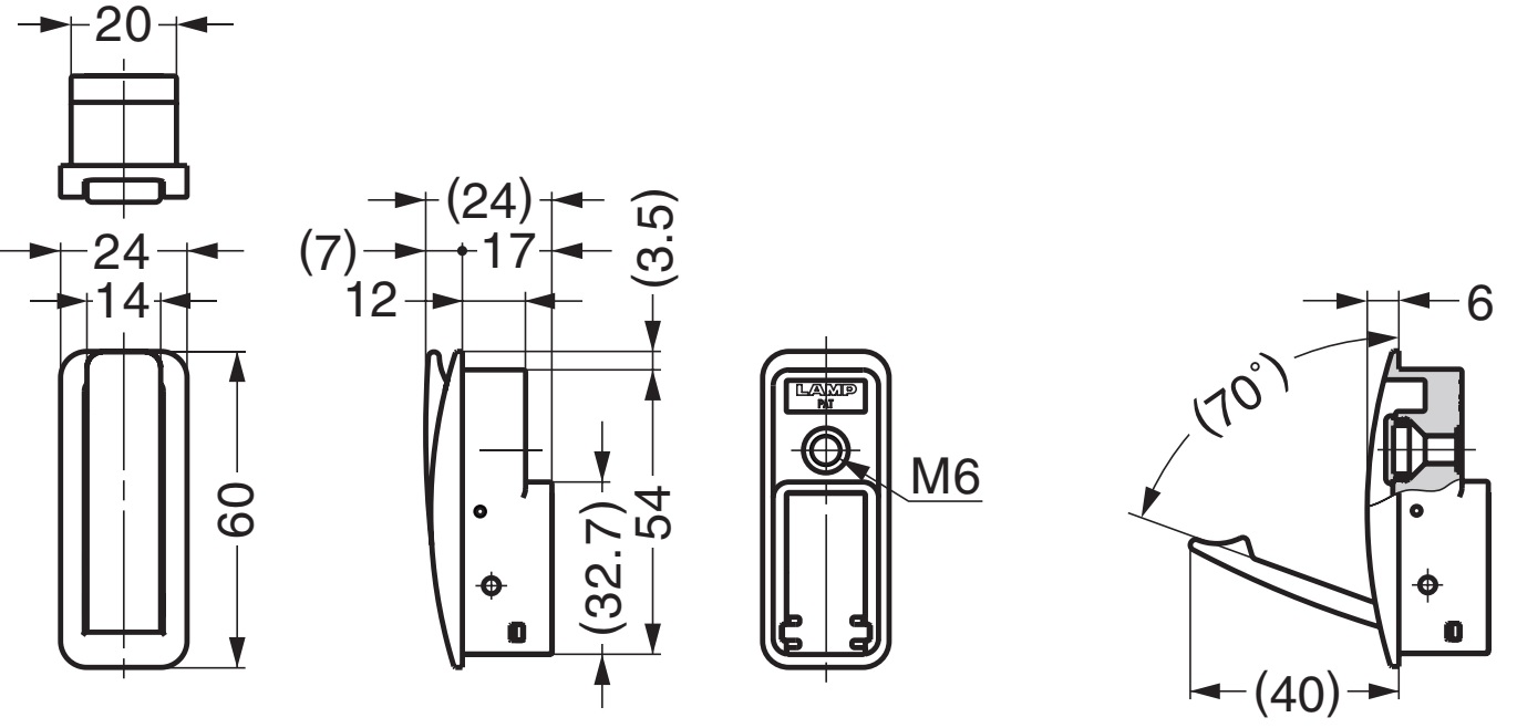 - Pour l’installation dans le panneau de bois ou la tôle, une découpe de dimensions de 55 mm (2-11/64 ») x 21 mm (53/64 ») doit être réalisée