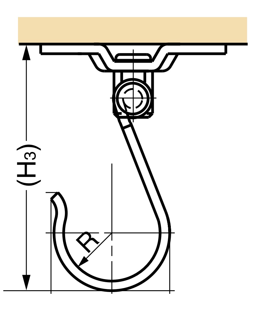 Crochets en acier inoxydable UJ-040 et UJ-050. Pour les valeurs H3 et R, voir le tableau ci-dessous.