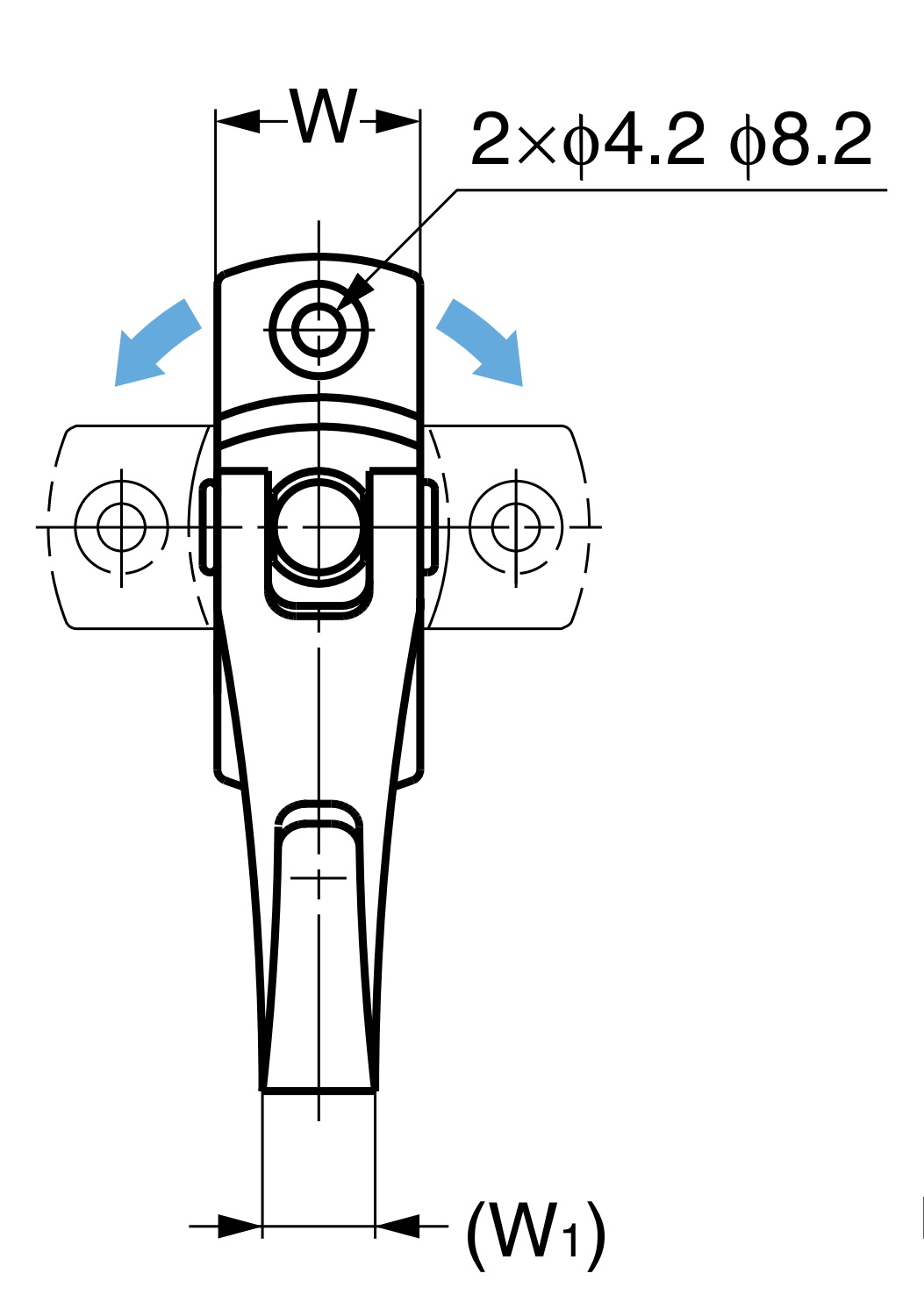 Crochets en acier inoxydable UJ-040 et UJ-050. Pour les valeurs W et W1, voir le tableau ci-dessous. tableau ci-dessous.
