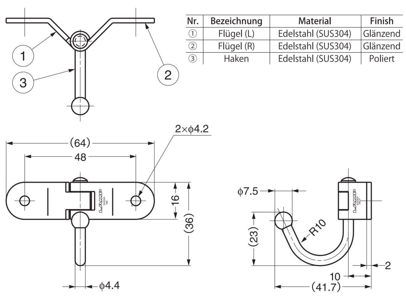 Ce crochet pivotant en acier inoxydable V2A de haute qualité offre des possibilités de fixation uniques, ainsi que la plus haute qualité.
