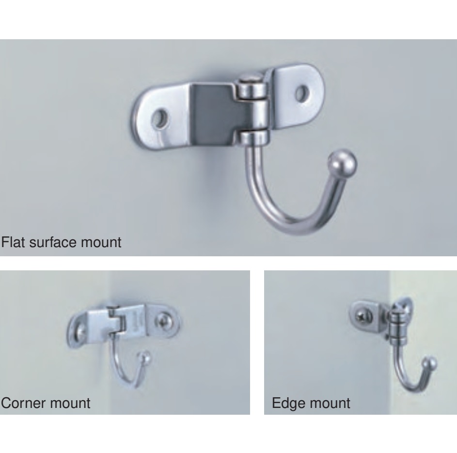 - le crochet en acier inoxydable peut être monté sur une surface plane, dans un coin ou sur un bord