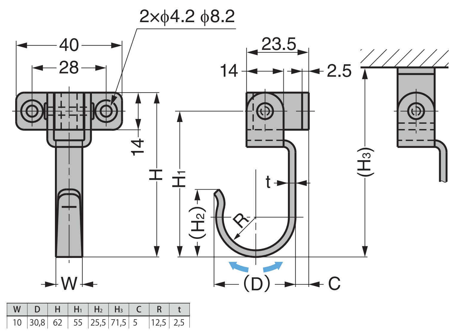 Ce crochet design pivotant en acier inoxydable V2A de haute qualité (SUS304) offre une qualité supérieure et pivote à 180° vers l’avant et vers l’arrière.