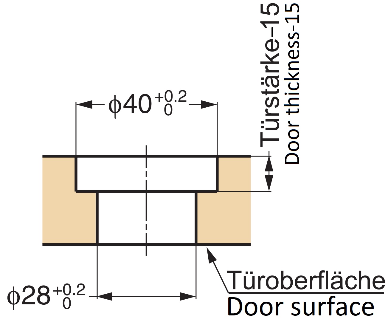 • La distance entre le bord de la porte et l’alésage est de 34 mm (1-11/32″)