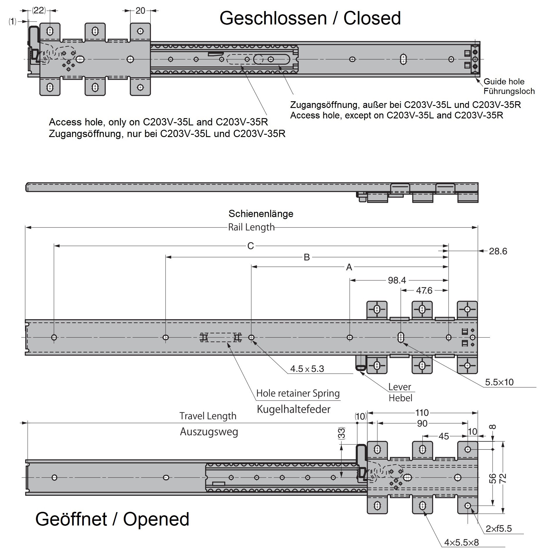 C’est pourquoi les C203V conviennent parfaitement à l’équipement haut de gamme, des magasins où les marchandises se trouvent dans un caisson en verre et doivent toujours être retirées temporairement à la demande des clients pour être présentées ou montrées.