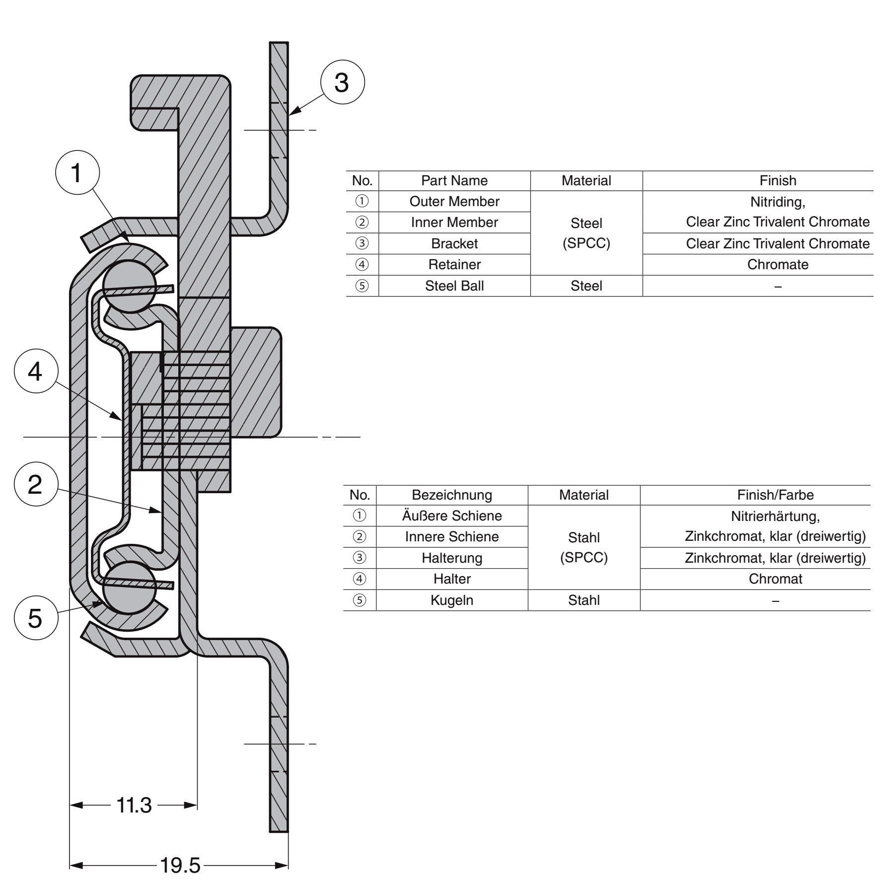 - Les glissières sont plates et ne mesurent que 19,5 mm.