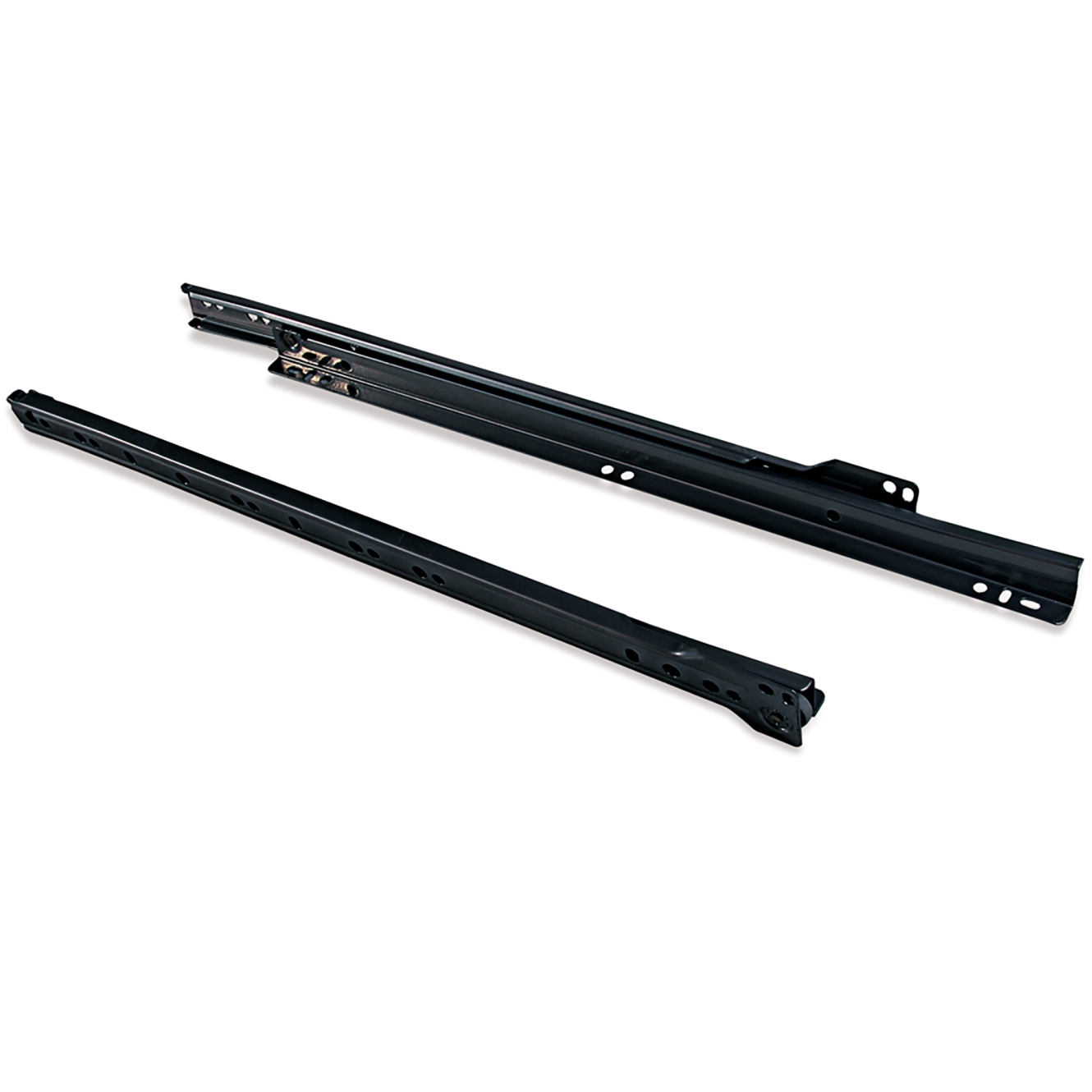 Les guides de tiroir E.T30C.35.BL en acier robuste, longueur nominale 350 mm (13-25/32 ») avec fermeture automatique intégrée permettent aux tiroirs de rouler