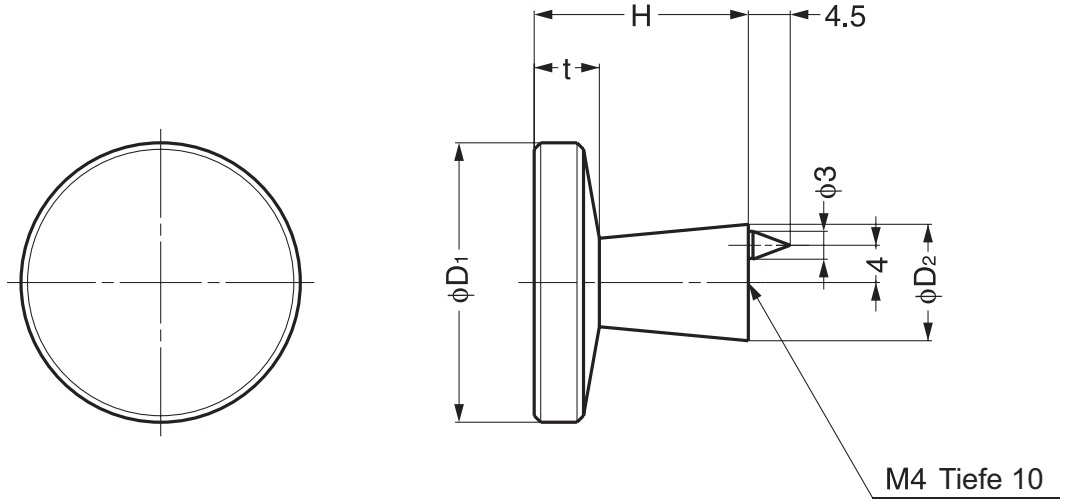 • Le manche a également une aiguille d’une longueur de 4,5 mm (11/64 ») et d’un diamètre de Φ3 mm (1/8 »). Cette aiguille de fixation garantit que la poignée du bouton est montée de manière sûre et stable et ne tourne pas pendant l’utilisation