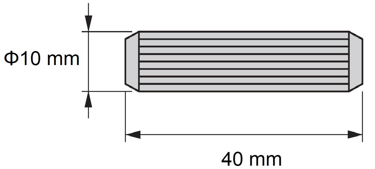 Chevilles longues en bois de hêtre, surface: nervurées, 40 mm, par EMUCA. Dessin technique