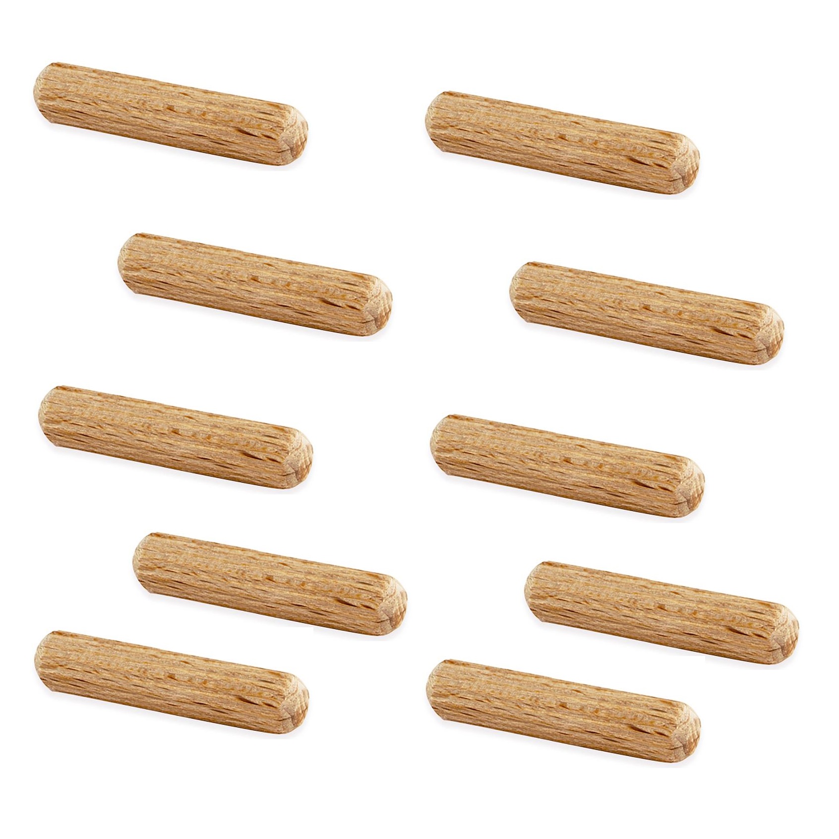 10 pièces de longues chevilles en bois de hêtre, surface : nervurée, 40 mm (1,6 ») 9094878. Chevilles en bois 9094878 pour panneaux de bois, connexion bois, construction de meubles, construction d’étagères, par EMUCA