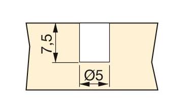 - En préparation de l’installation du tampon de charnière de porte, un trou de forage d’un diamètre de perçage de Φ6 mm (15/64 ») et d’une profondeur de forage de 7,5 mm (19/64 ») doit être pré-percé à l’endroit souhaité