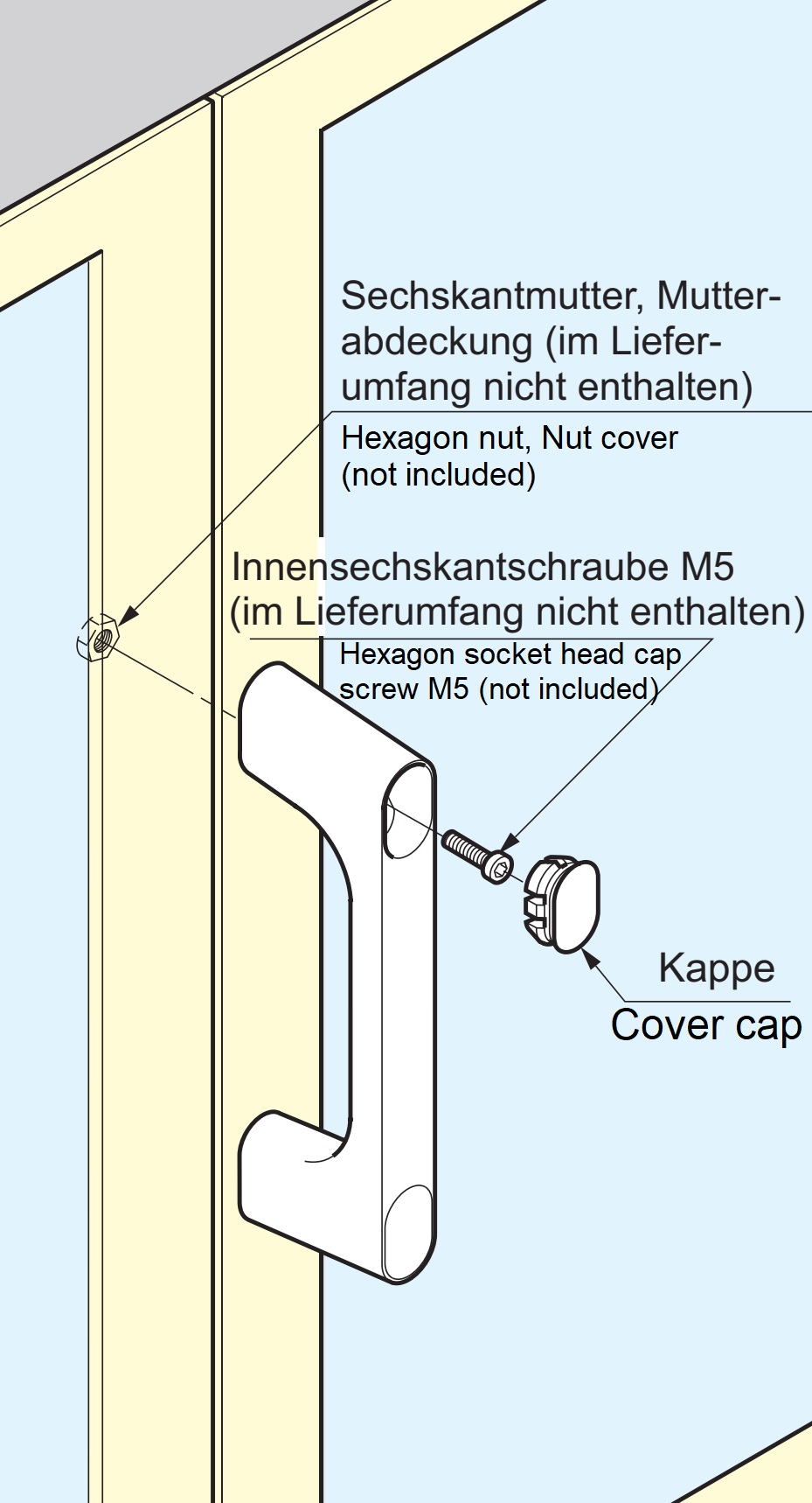 Poignée de machine KMH-120-BU pour armoire industrielle, usine de production, construction mécanique.