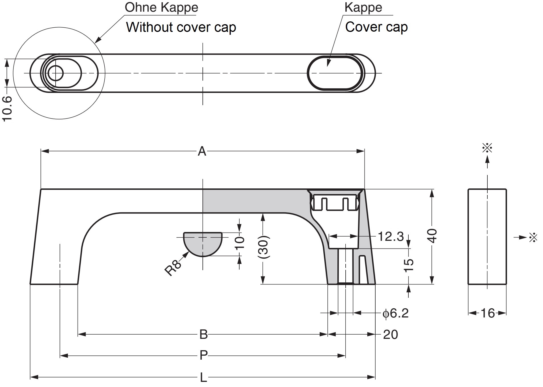 - Hauteur intérieure de la zone de préhension : 30 mm (1-3/16 »)