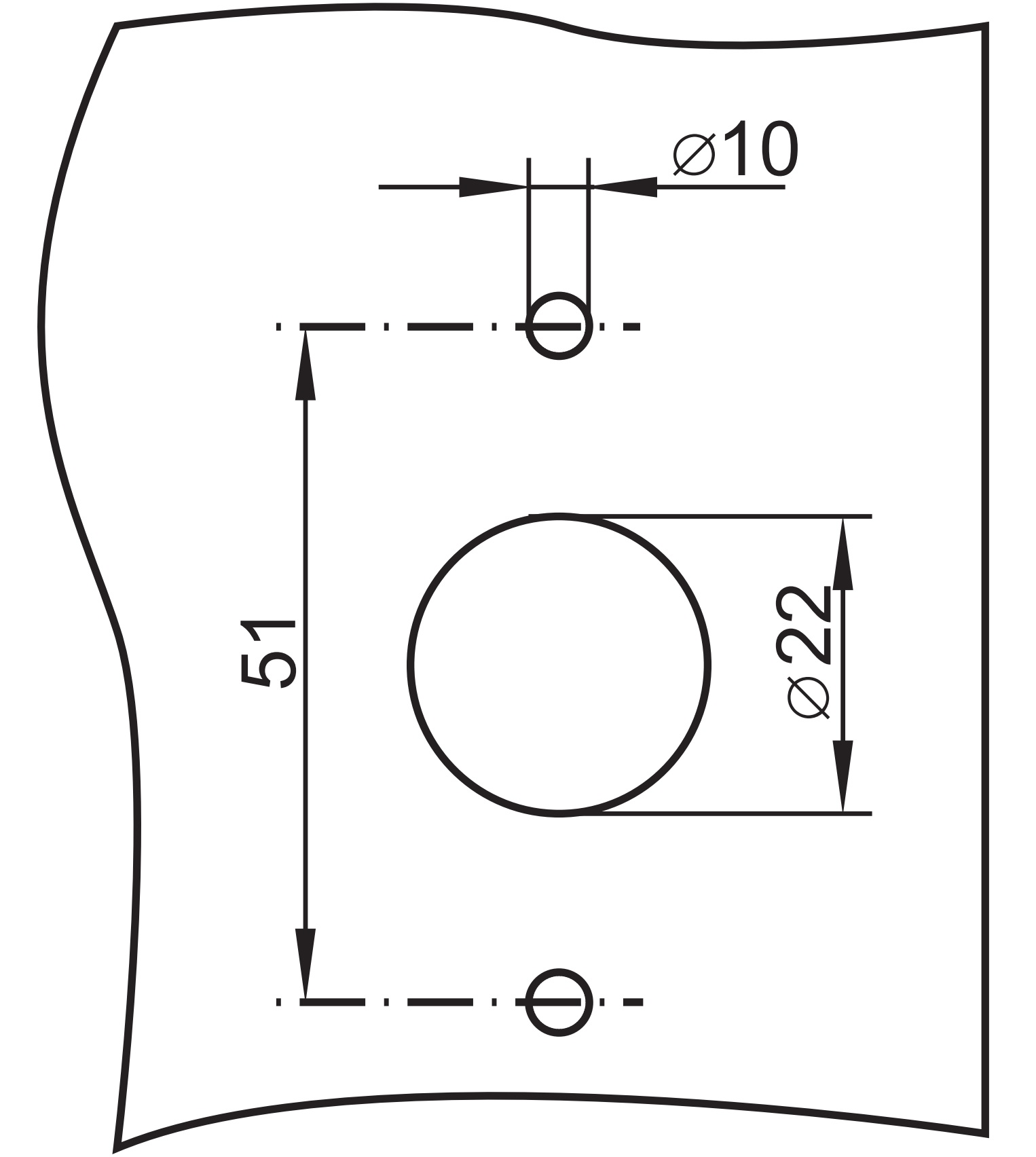 • La plaque de montage de la serrure d’armoire de commande 14.08.056-0 comporte deux trous de montage avec l’espacement des trous de perçage : 51 mm (2-1/64 ») (pour plus de détails, voir