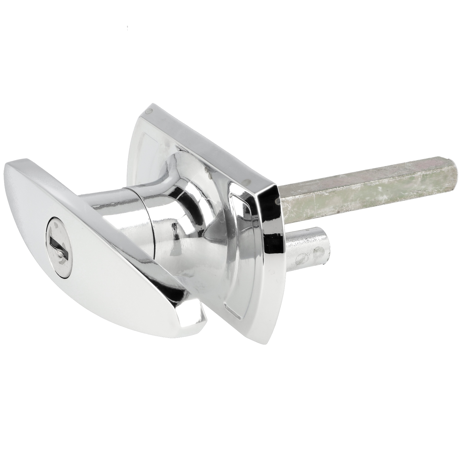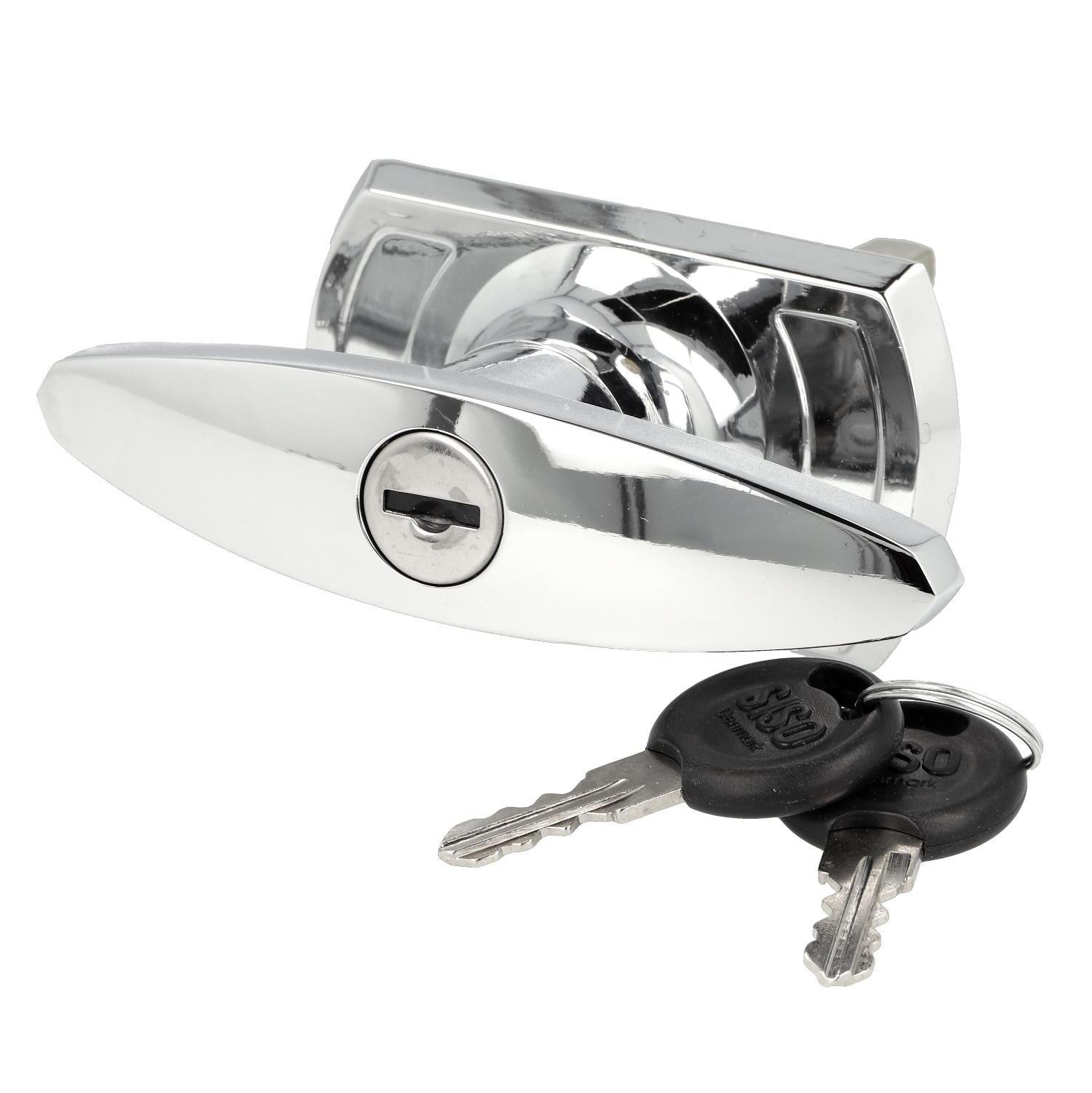 • 1 poignée d’armoire électrique 14.08.056-0 en zinc massif moulé sous pression, chromée, avec cylindre de fermeture fixe