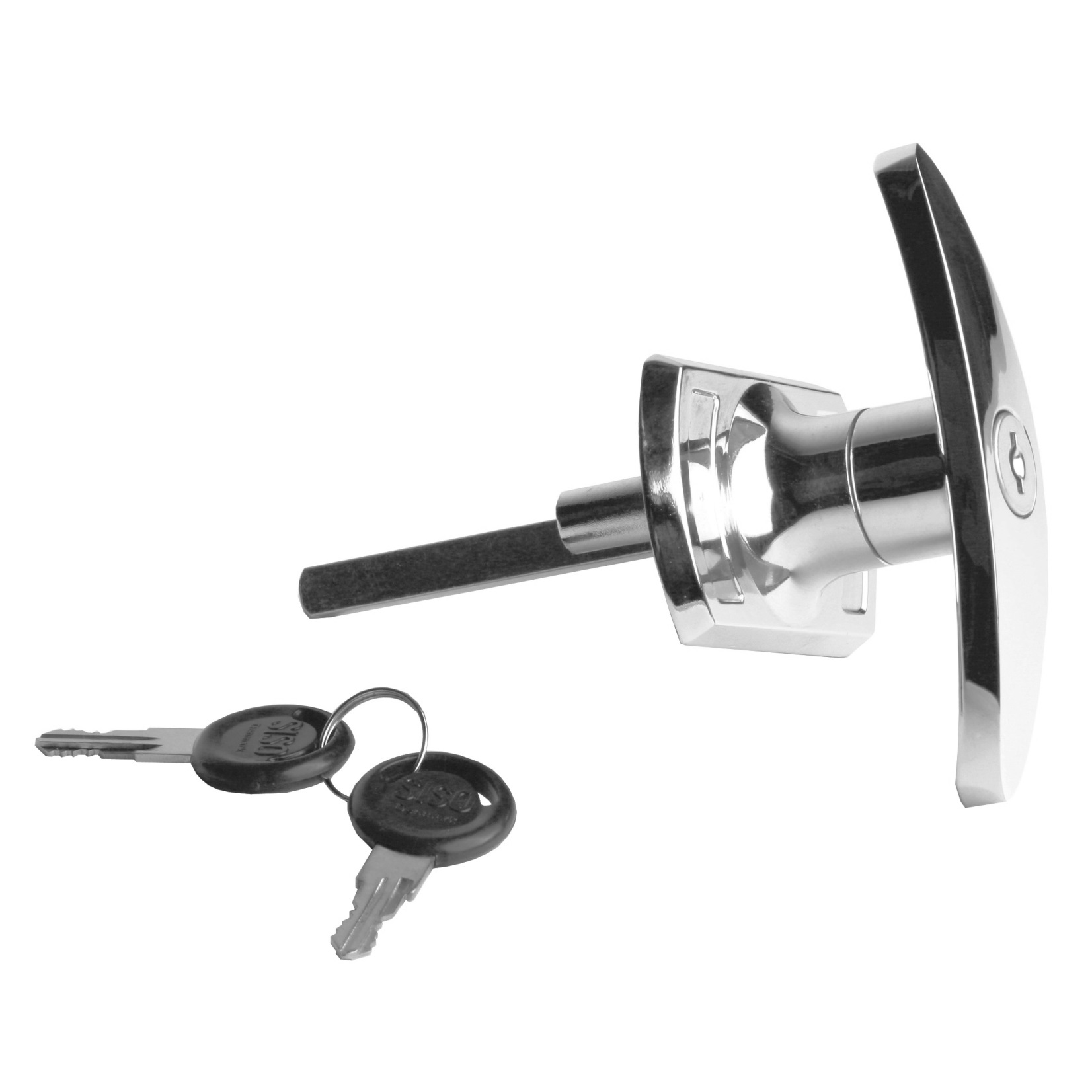 Poignée d’armoire de commande verrouillable de haute qualité avec cylindre de fermeture, en zamak, avec carré de 8 mm et deux clés, design : verrouillage différent, 14.08.056-0. Poignée en T en zamak pour armoire de commande, casier, véhicule et bien plus