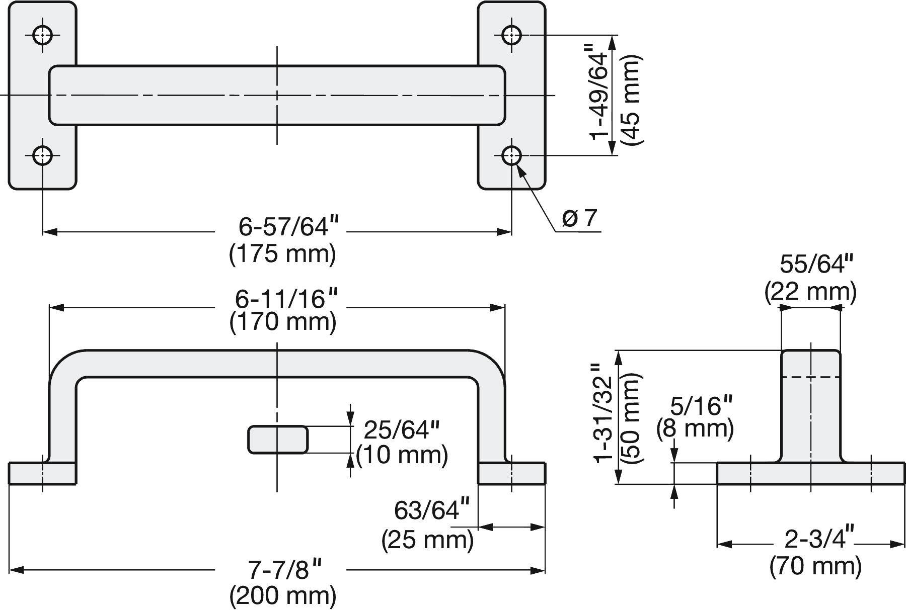 Poignée en acier inoxydable massif V4 (SUS316) de haute qualité avec quatre trous de montage, finition brillante, hauteur 50 mm (1,97″) FT-200