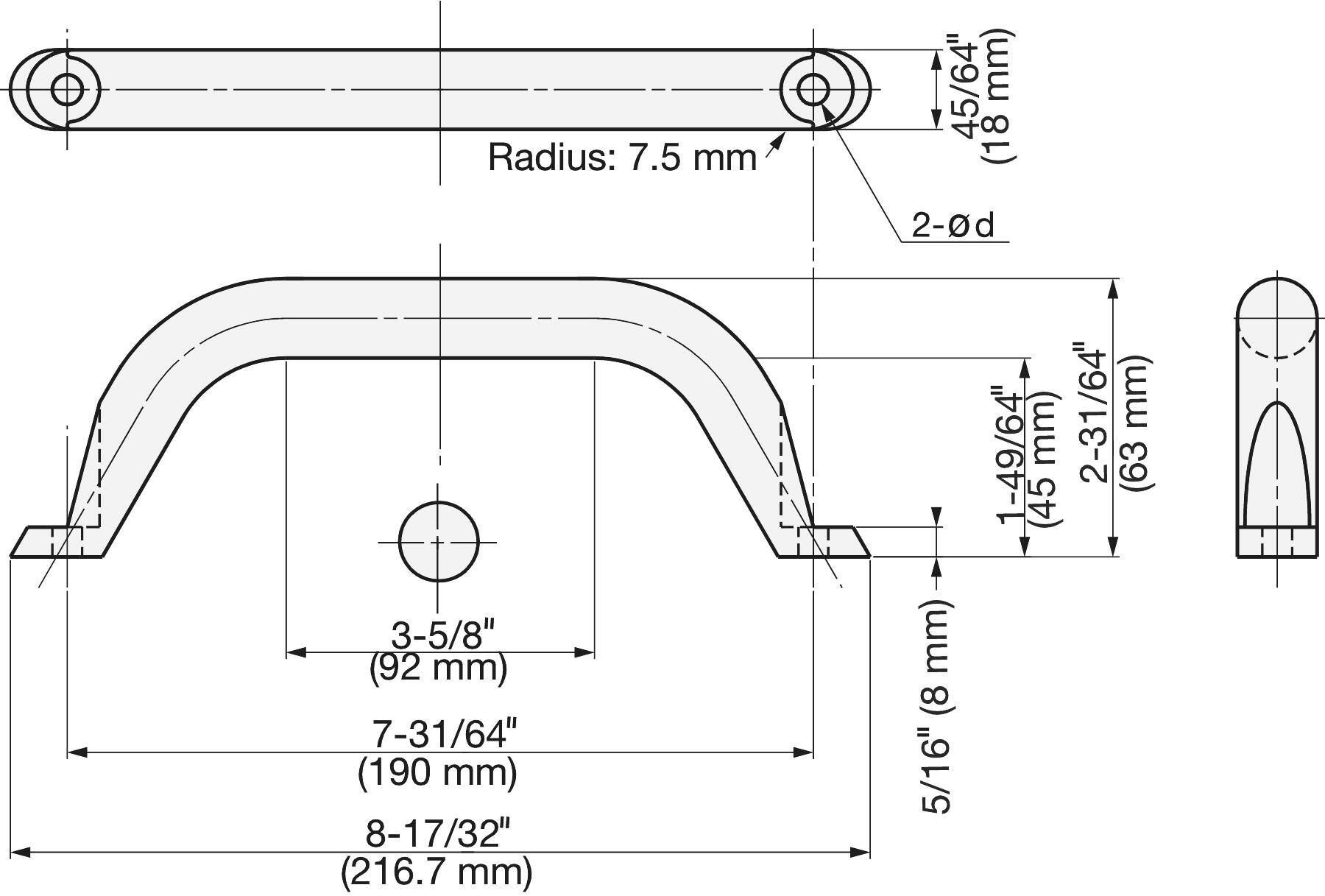 Poignée de meuble en acier inoxydable MG-190 SUS316 216,7 mm. Dessin technique