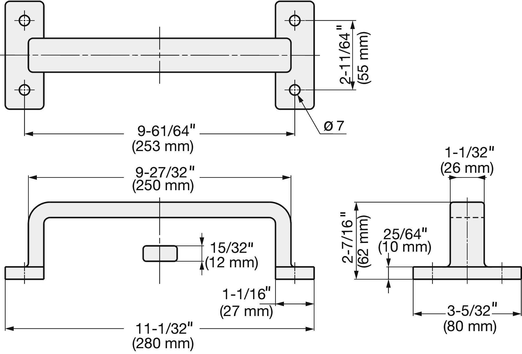 Poignée en acier inoxydable massif V4 (SUS316) de haute qualité avec quatre trous de montage, finition brillante, hauteur 62 mm (2,45″) FT-280