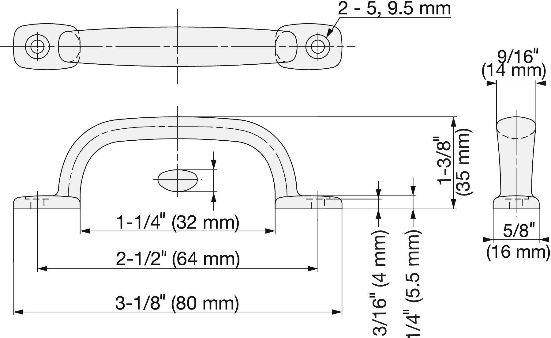 Poignée de meuble en acier inoxydable 2LC-80 SUS316 80mm. Dessin technique