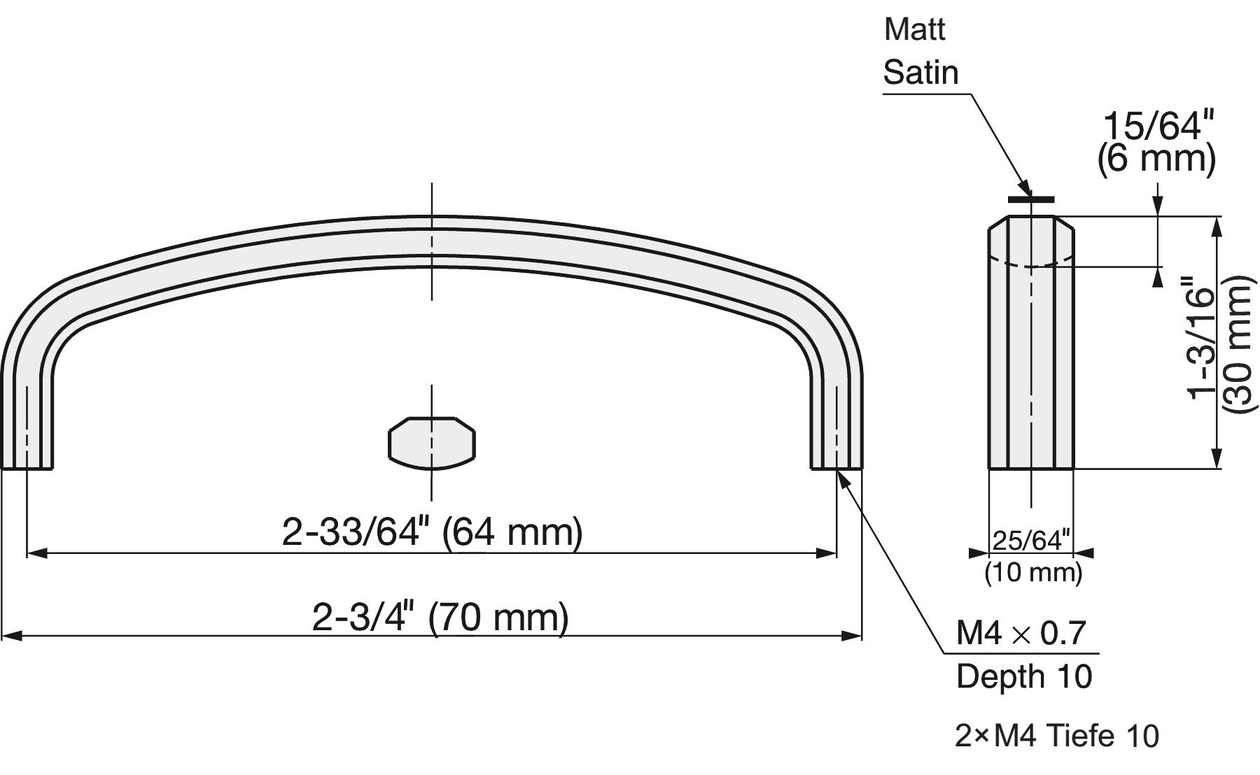 Poignée en acier inoxydable massif SUS316 de haute qualité, finition combinée mate et brillante, hauteur 30 mm XL-JSR70TT