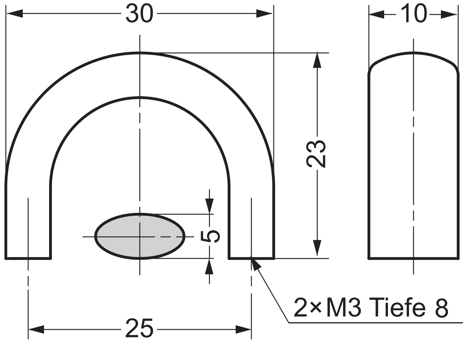 Poignée de meubles en acier inoxydable de haute qualité en SUS304 (V2A), polie brillante, DS-30M, 30 mm, par Sugatsune. Dessin technique