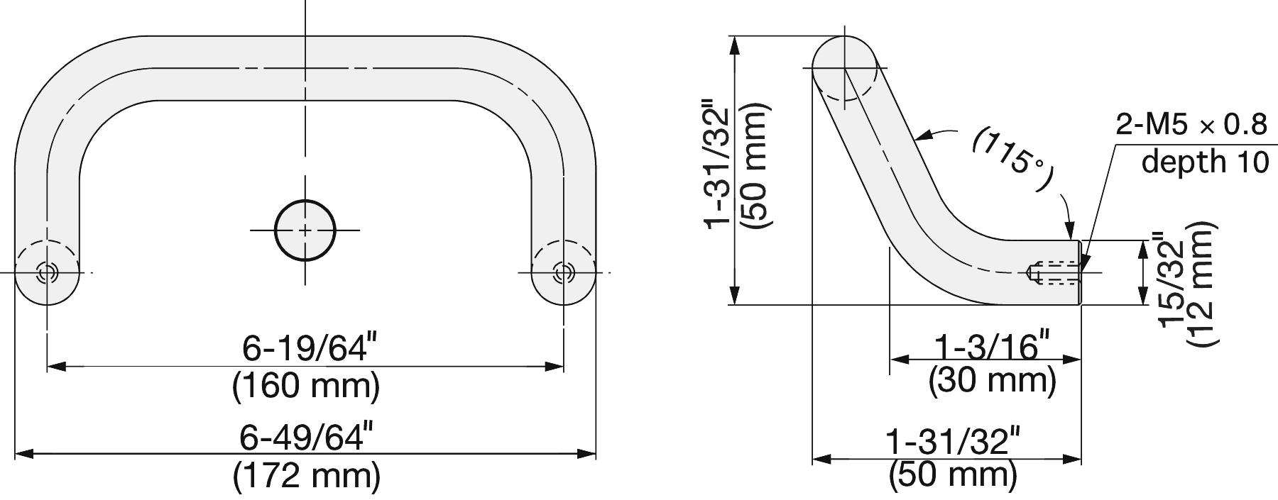 - Hauteur de la poignée : 50 mm (1-31/32″)