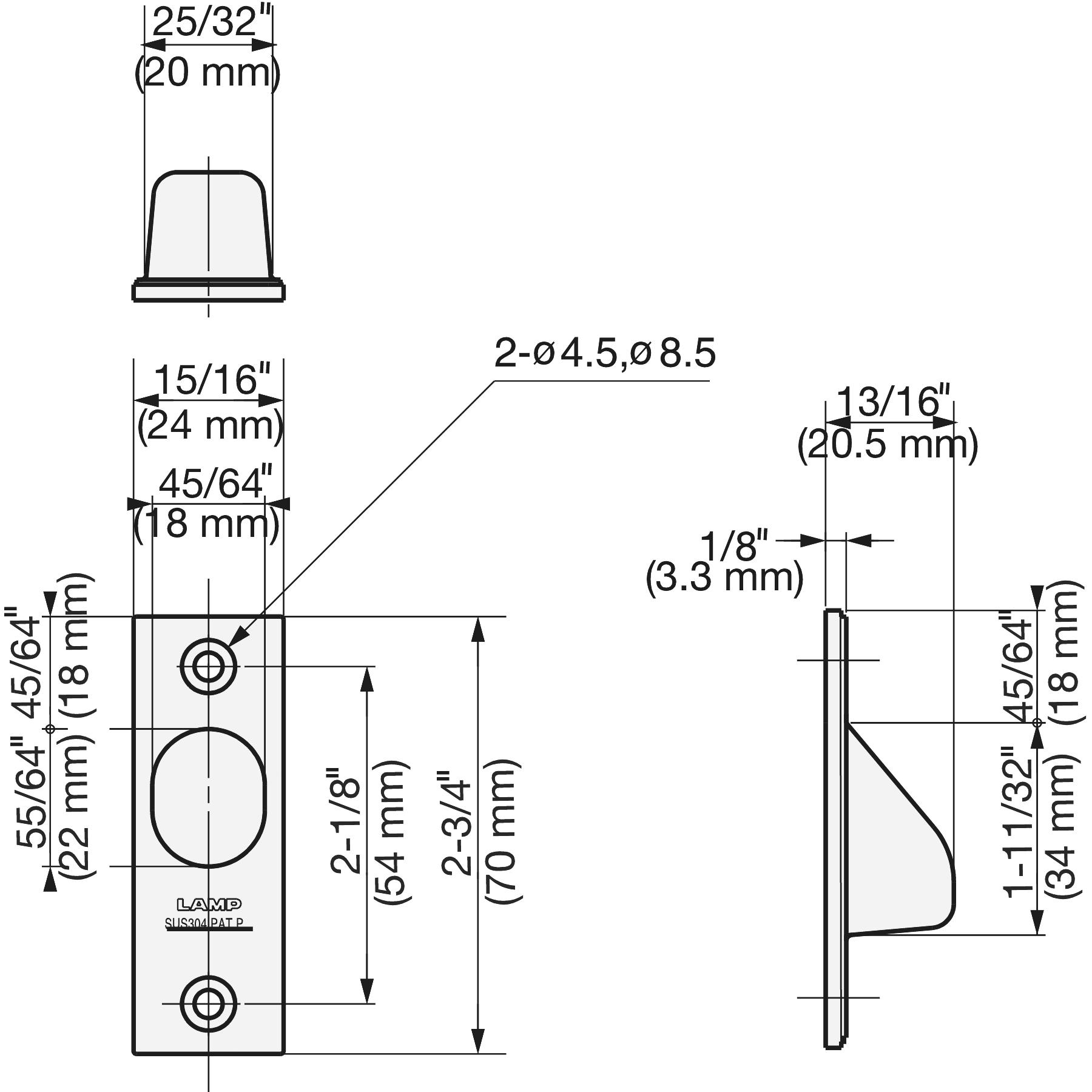 • Distance entre les trous de montage : 54 mm (2-1/8″)
