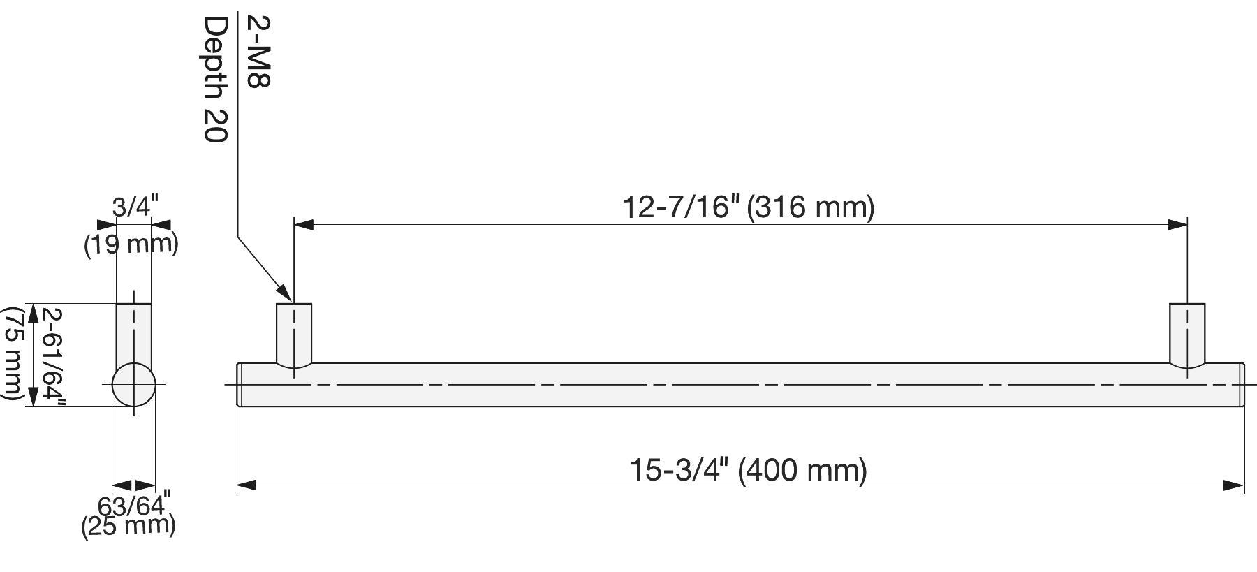 - Dimensions de la poignée de porte en acier inoxydable : 400 mm (15-3/4″)