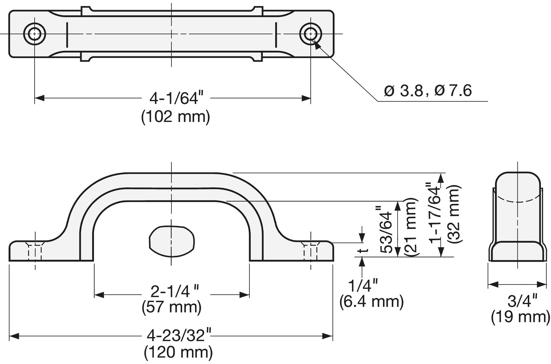 • Hauteur de la poignée intérieure : 21 mm (26/32″)