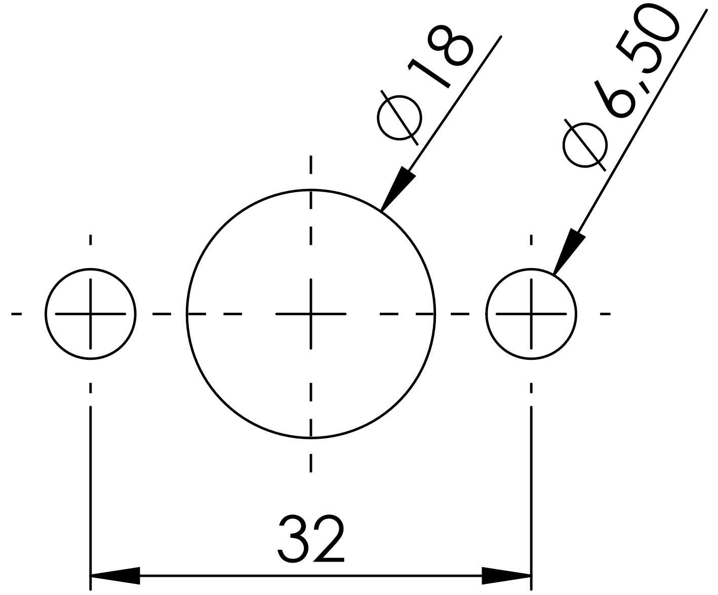 • Pour le montage, deux trous d’un diamètre de ⌀6,5 mm (1/4 ») et un trou d’un diamètre de ⌀18 mm (45/64 ») doivent être percés à l’avant