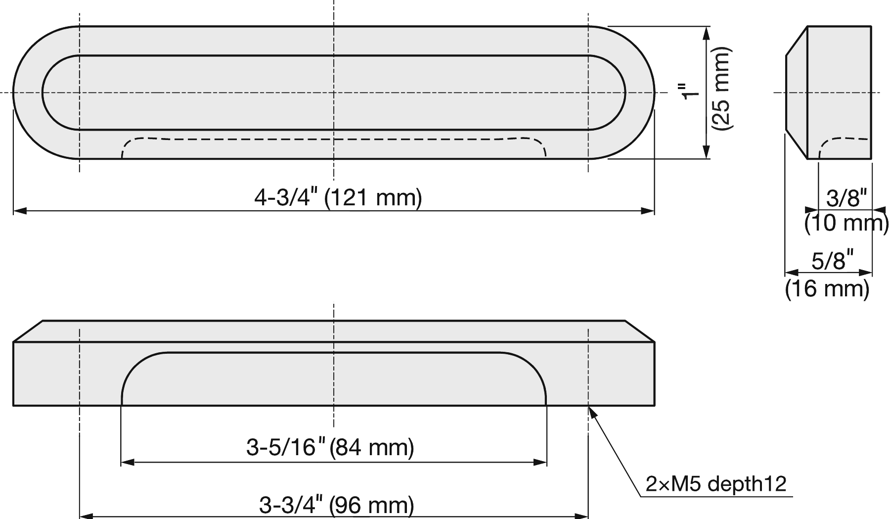 - Profondeur de la poignée intérieure : 10 mm (0,4″)