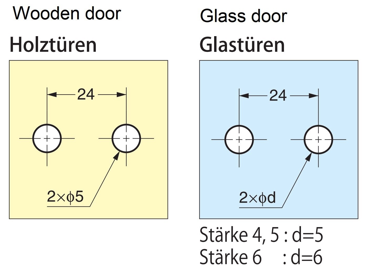 - Les trous dans la porte doivent être préparés pour la fixation ( voir dessin).