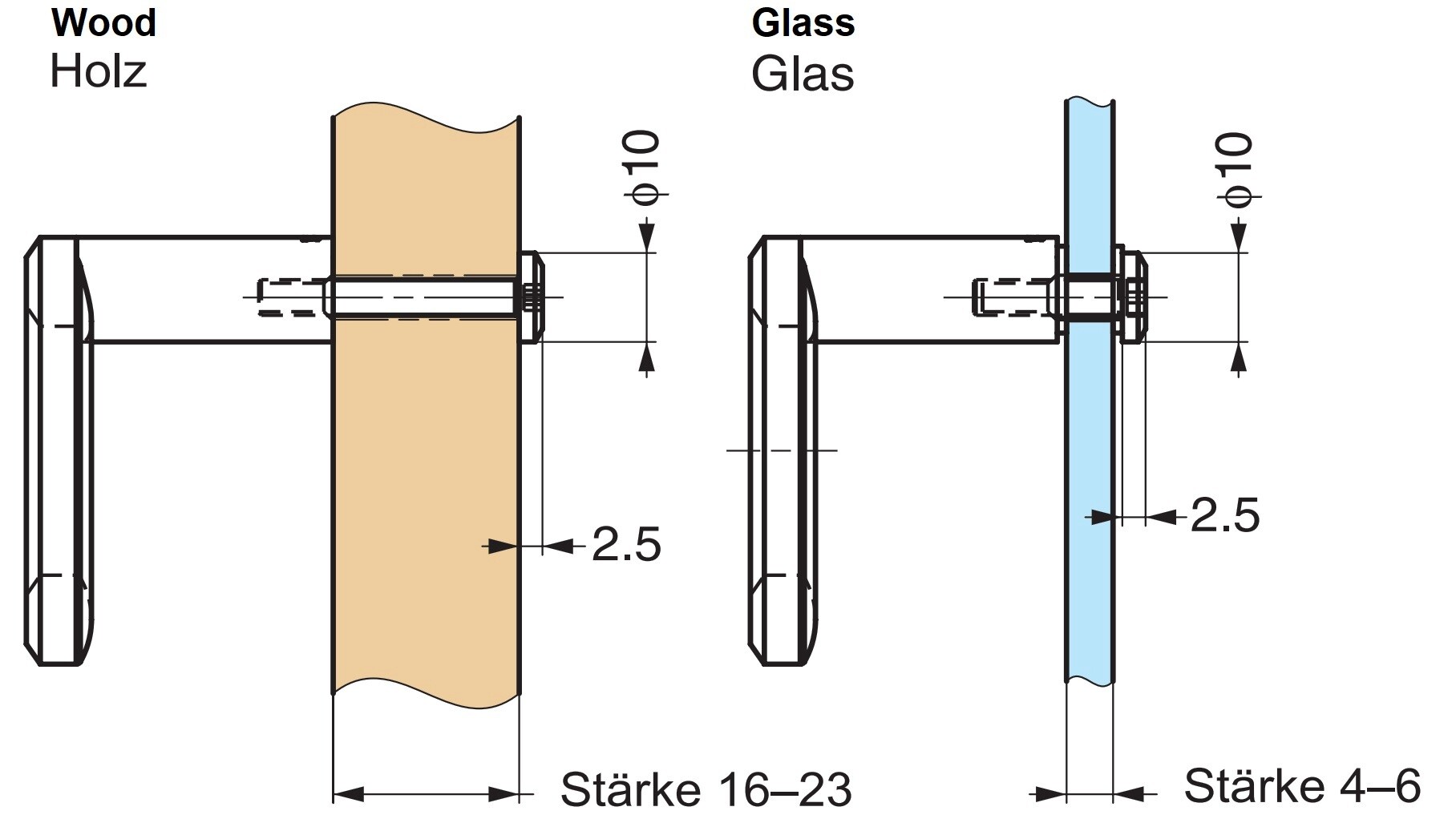- Vis de montage en deux parties M4 x 16 mm (pour porte en verre)